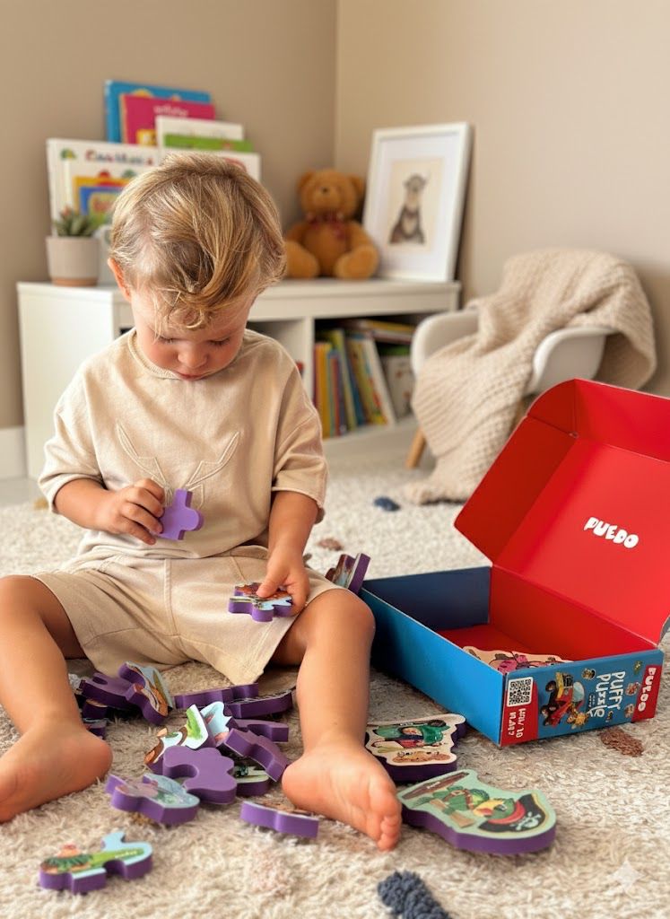 PUEDO® Puffy Puzzle Safari Animals, 24 ay ve üzeri minikler için tasarlanmış, ilk yapboz deneyimini keyifli ve öğretici hale getiren eğlenceli bir kutu oyunudur.