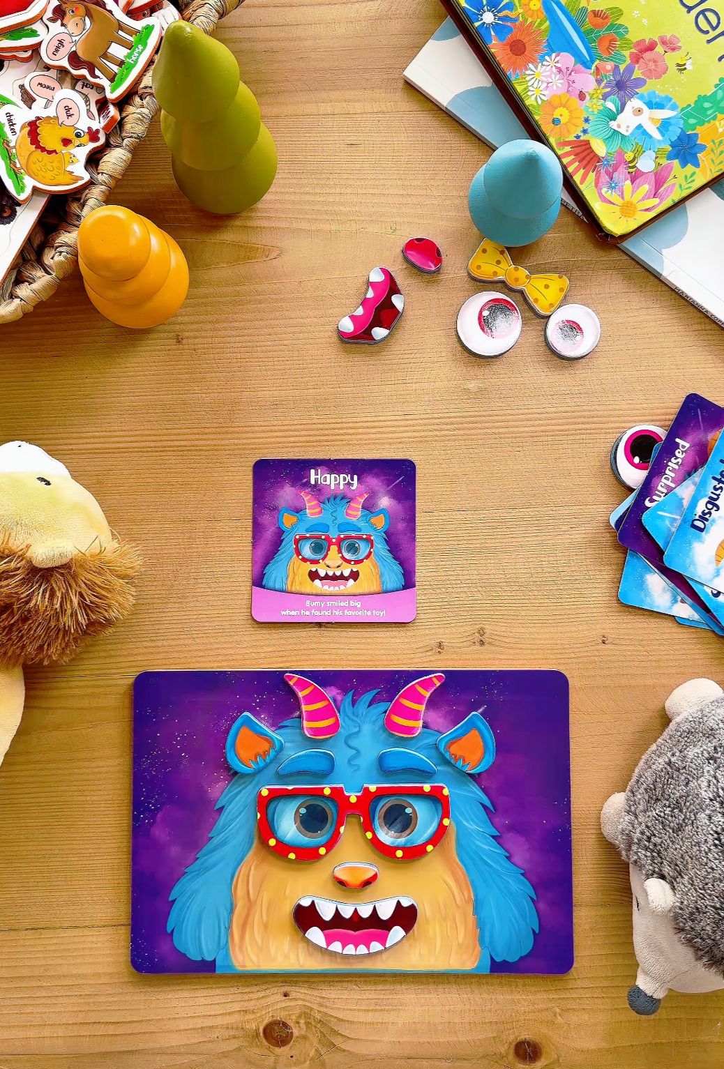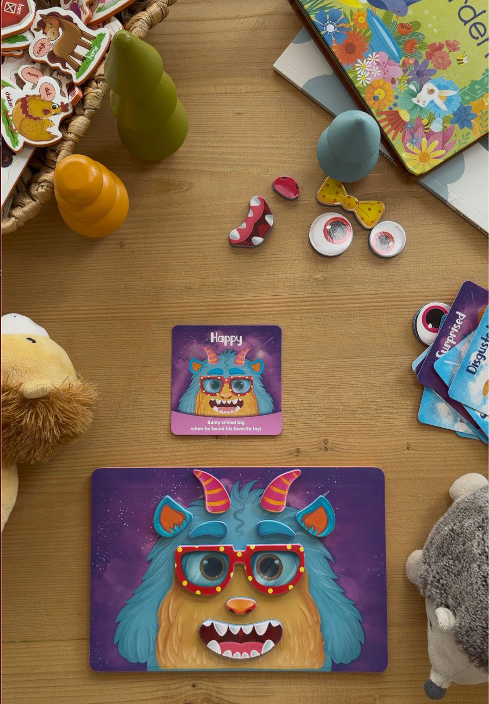 Çocuklar sevimli canavar figürlerini manyetik parçalarla tamamlarken duyular, duygular ve yüz ifadeleri arasındaki ilişkiyi keşfeder. Bu oyun, gözlem yapma, eşleştirme ve ifade etme becerilerini desteklerken aynı zamanda dil gelişimine de katkı sağlar.