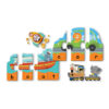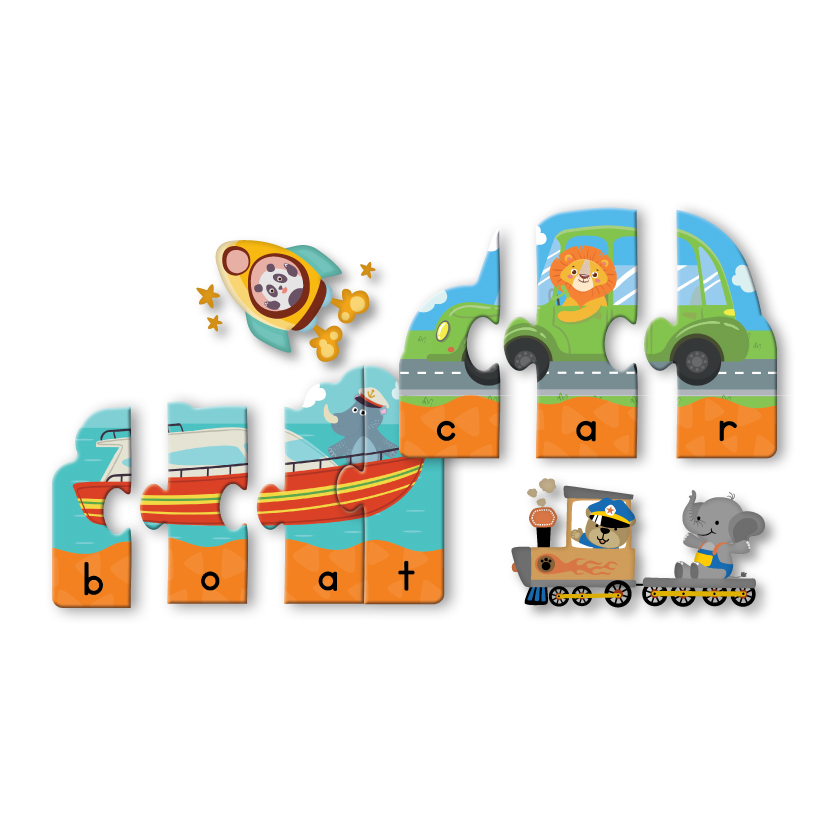 Ask the child to assemble the pieces having the same background color. As the puzzle pieces are assembled, the letters will be sequenced in the right way and a word will appear. This game helps the child to learn how to read.