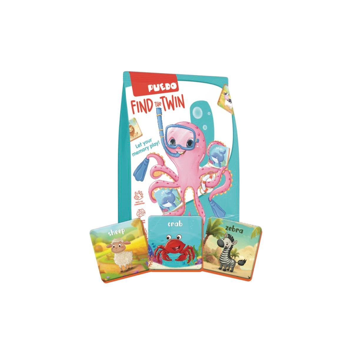 PUEDO® Find The Twin, 3 yaş ve üzeri çocuklar için tasarlanmış, çiftlik, sualtı ve safari temalarında hayvanları öğreten eğitici ve eğlenceli bir eşleştirme oyunudur.