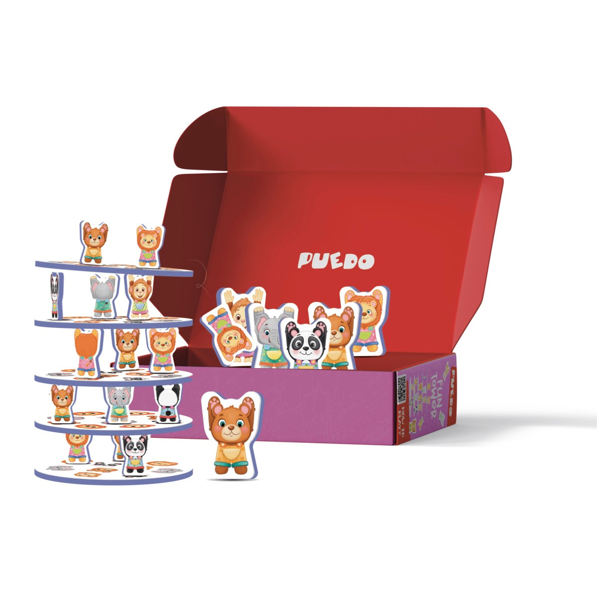 PUEDO® Fun Tower, 3 yaş ve üzeri çocuklar için tasarlanmış, denge becerisini geliştirmeyi hedefleyen, eğitici ve eğlenceli bir denge kule oyunudur.